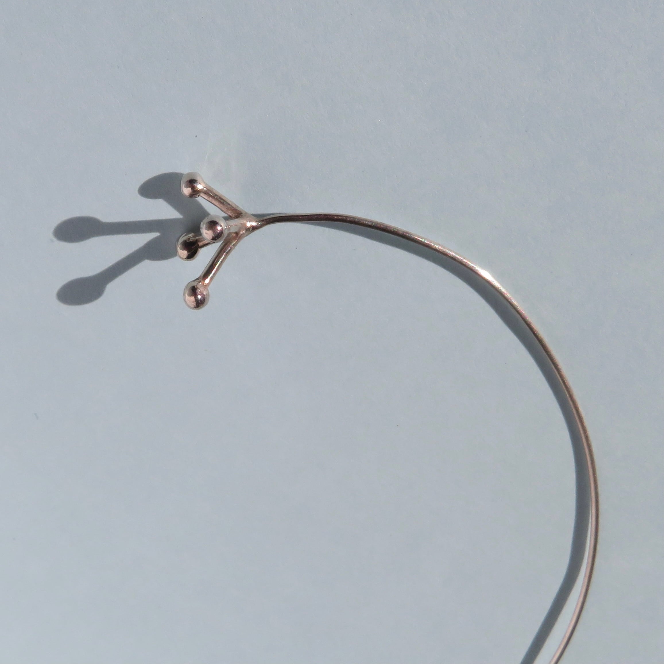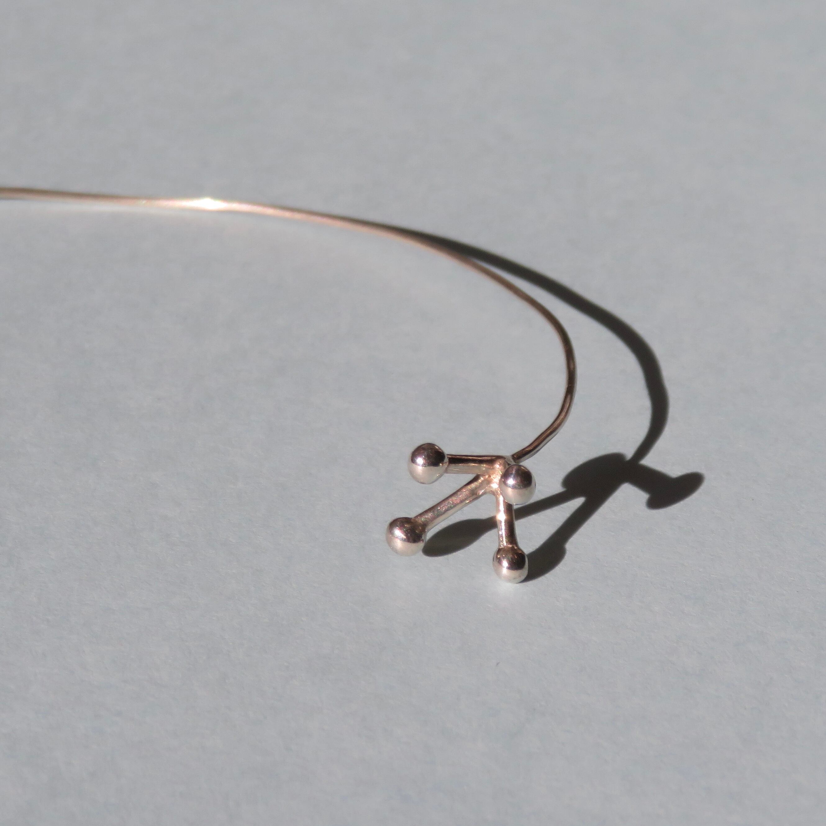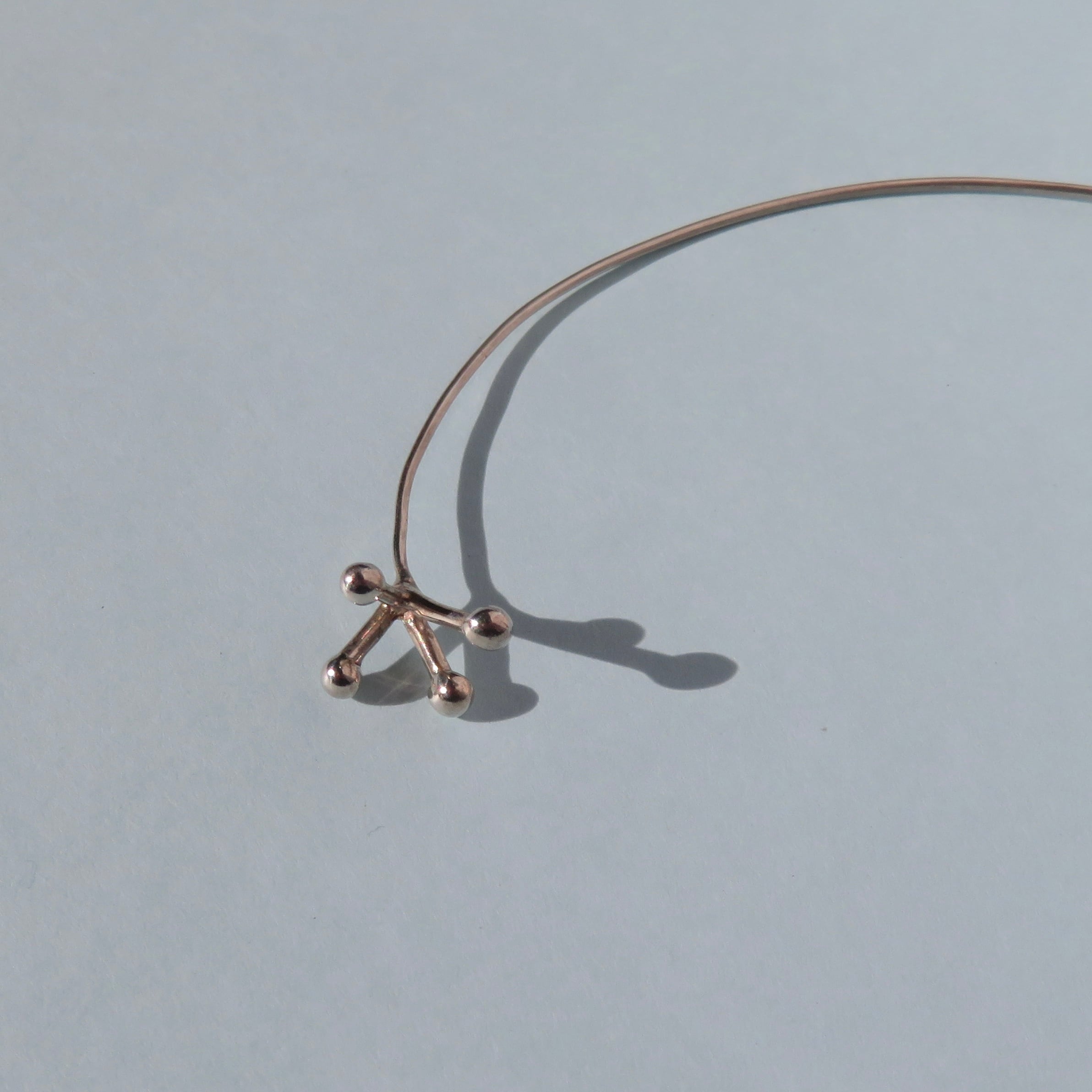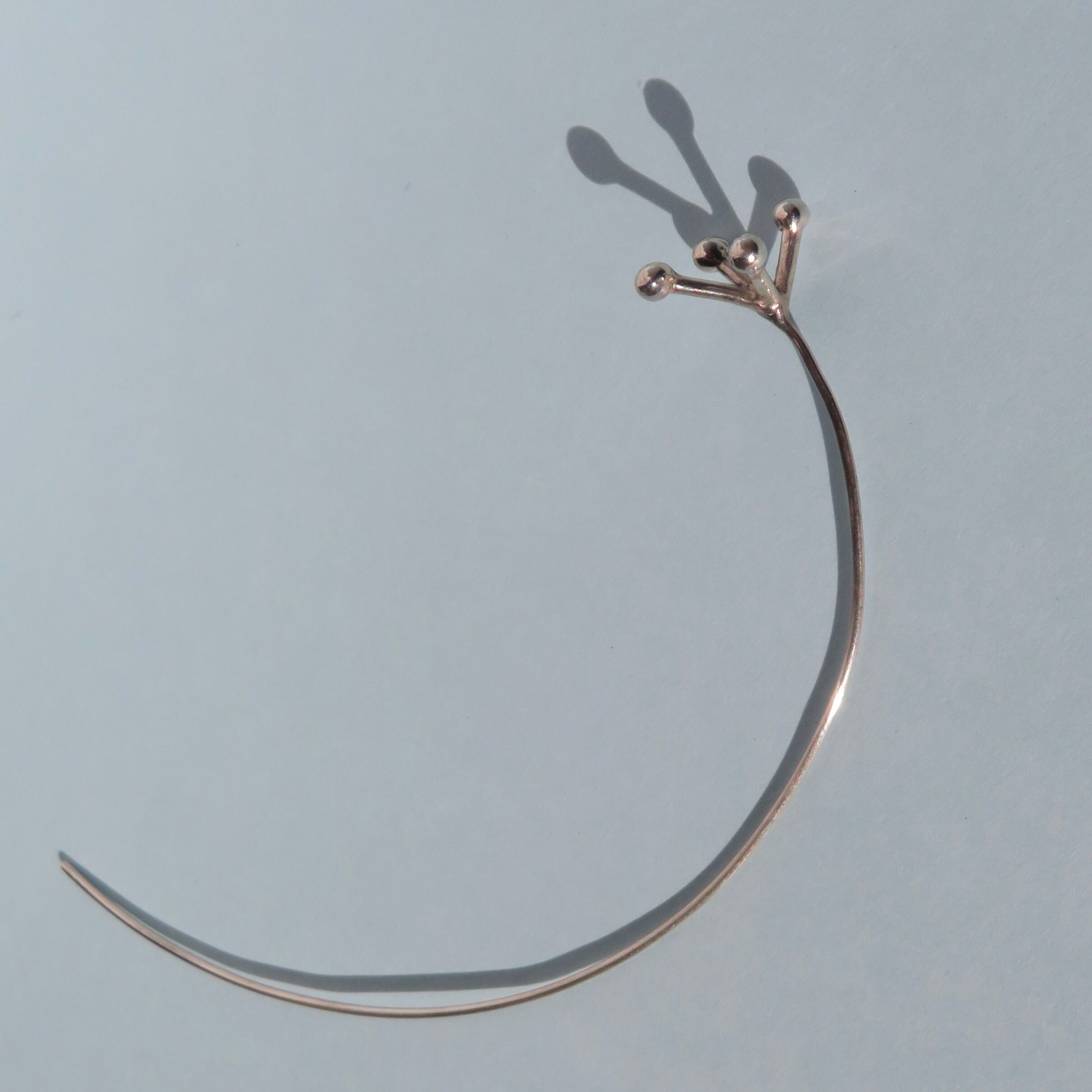 シルバーの丸線をカーブさせて作っているのでとても繊細な作品となっています。保管する際には折れたりしないように注意して保管してください。