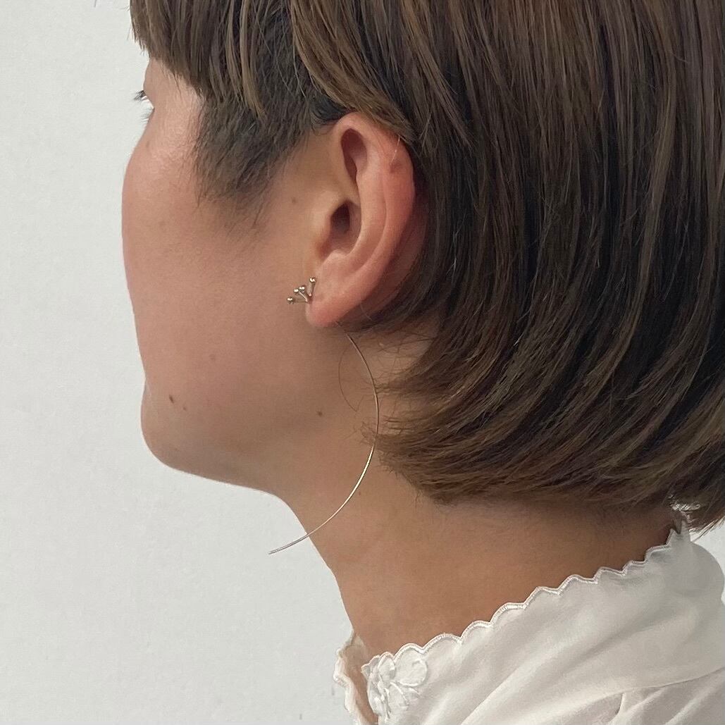 このピアスはミモザの花をイメージして作った、一輪挿しのように耳に通して着ける片耳用のピアスです。シルバー925と10金イエローゴールドの2色展開となっております。