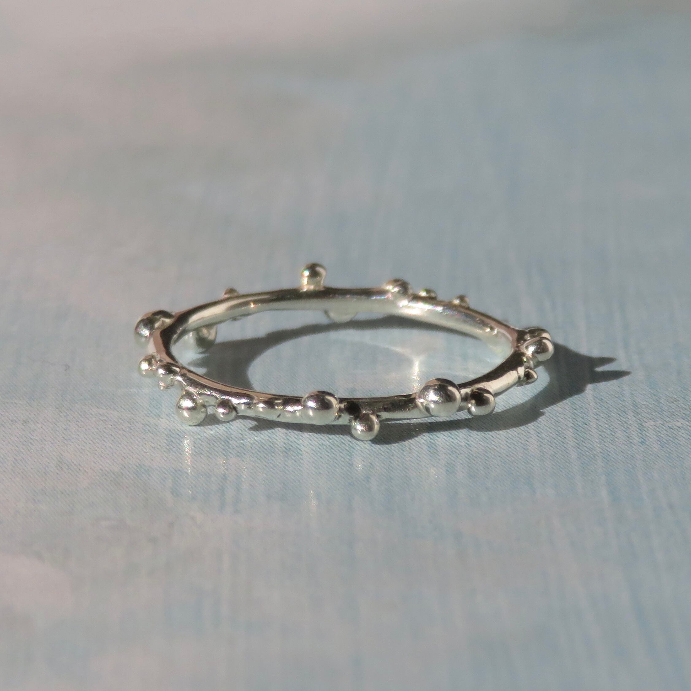 シルバー925でお作りした泡のようなつぶつぶが散りばめられたリングです。