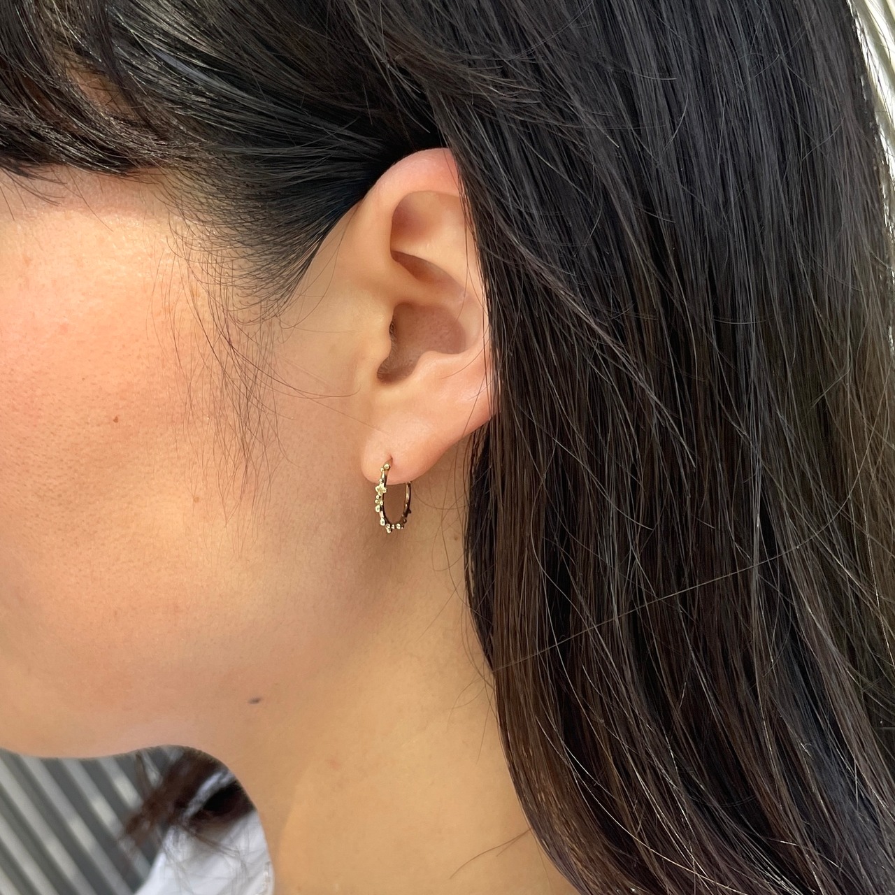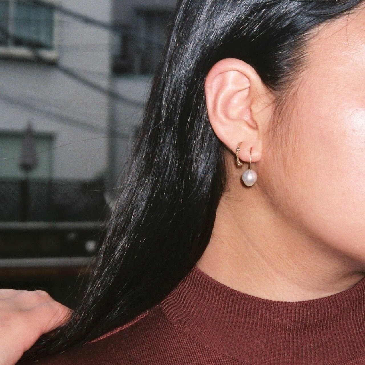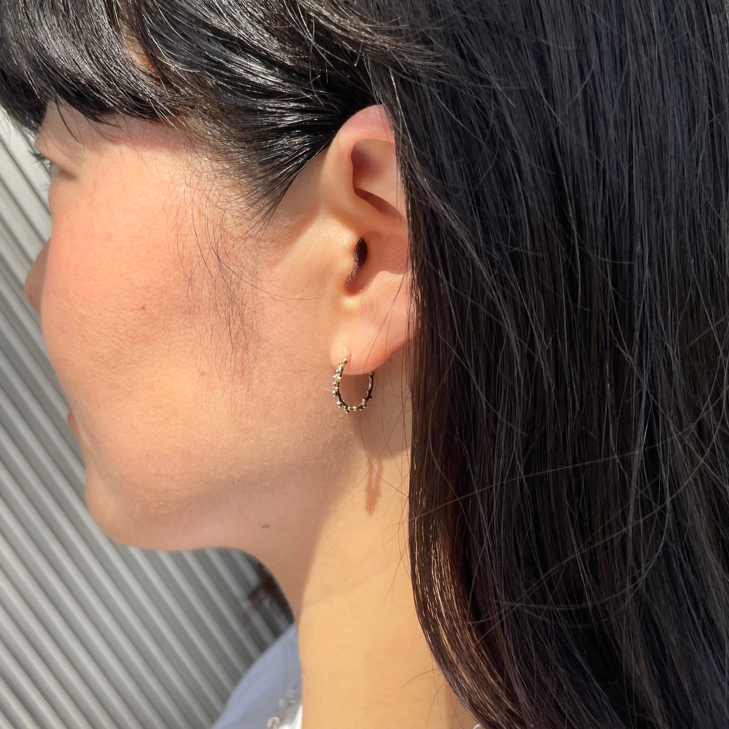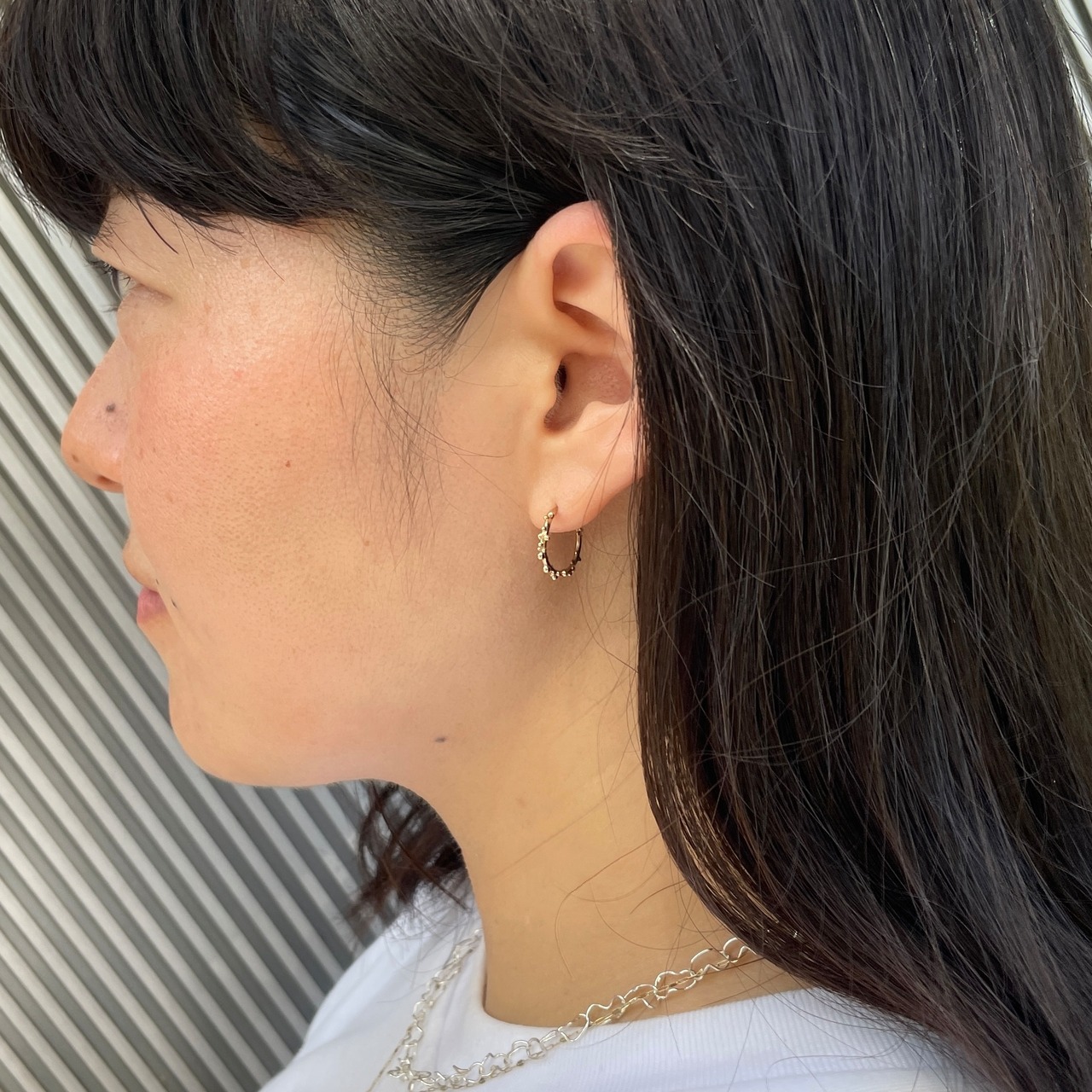 片耳に着けるのも、他のピアスと組み合わせるのも可愛いので色々な付け方を楽しんでいただけるピアスです。Tsubu tsubu リングとお揃いのデザインでセットで着けても可愛いです。