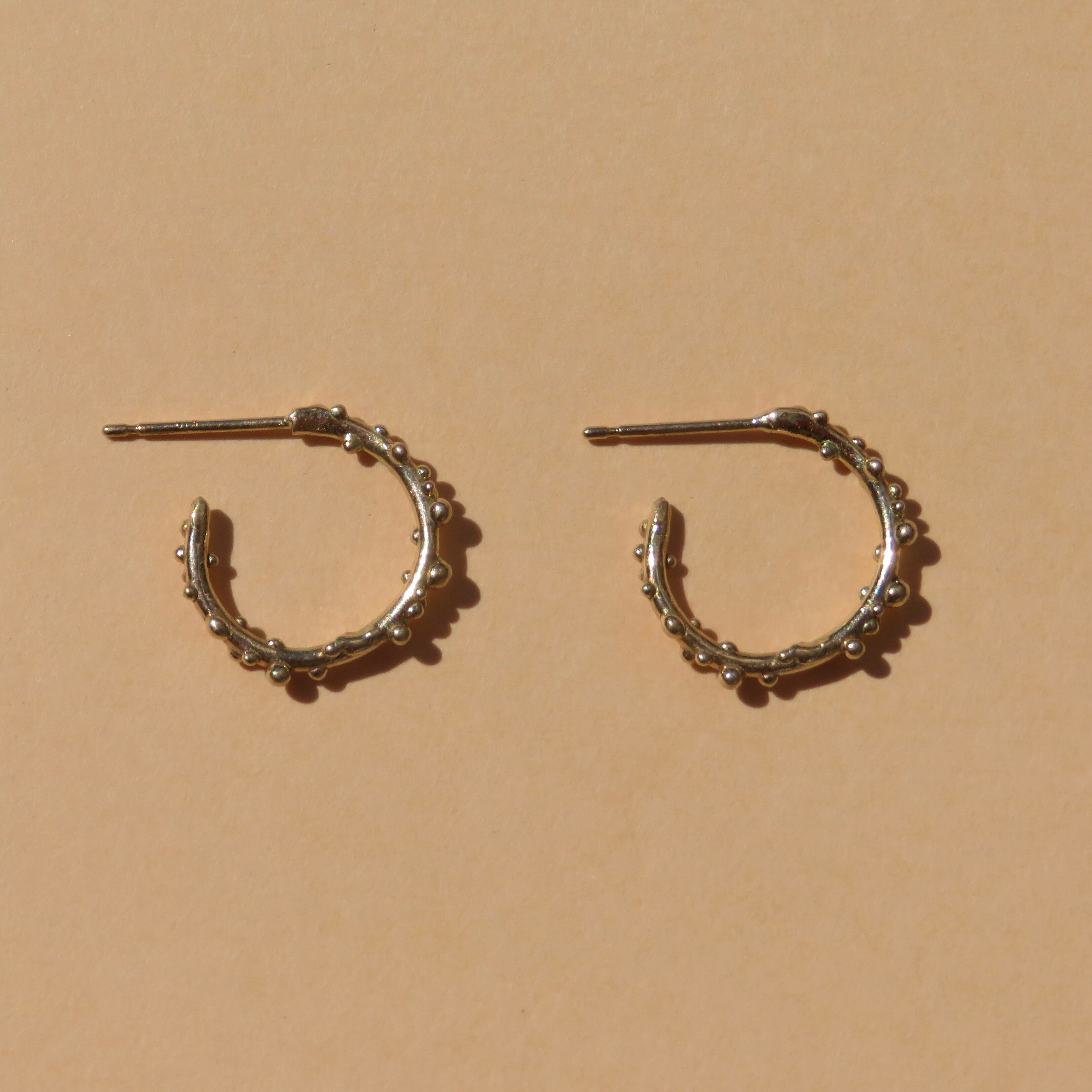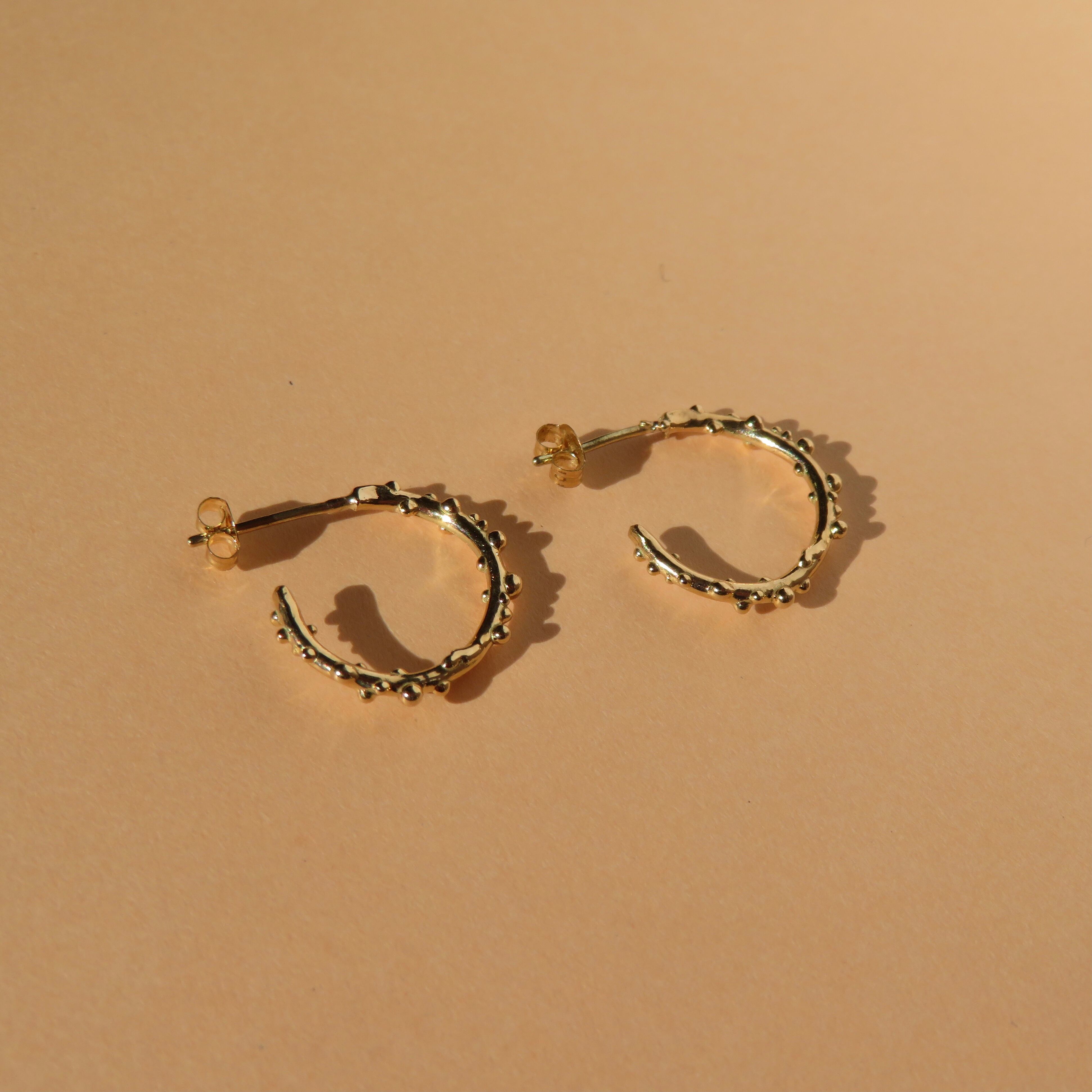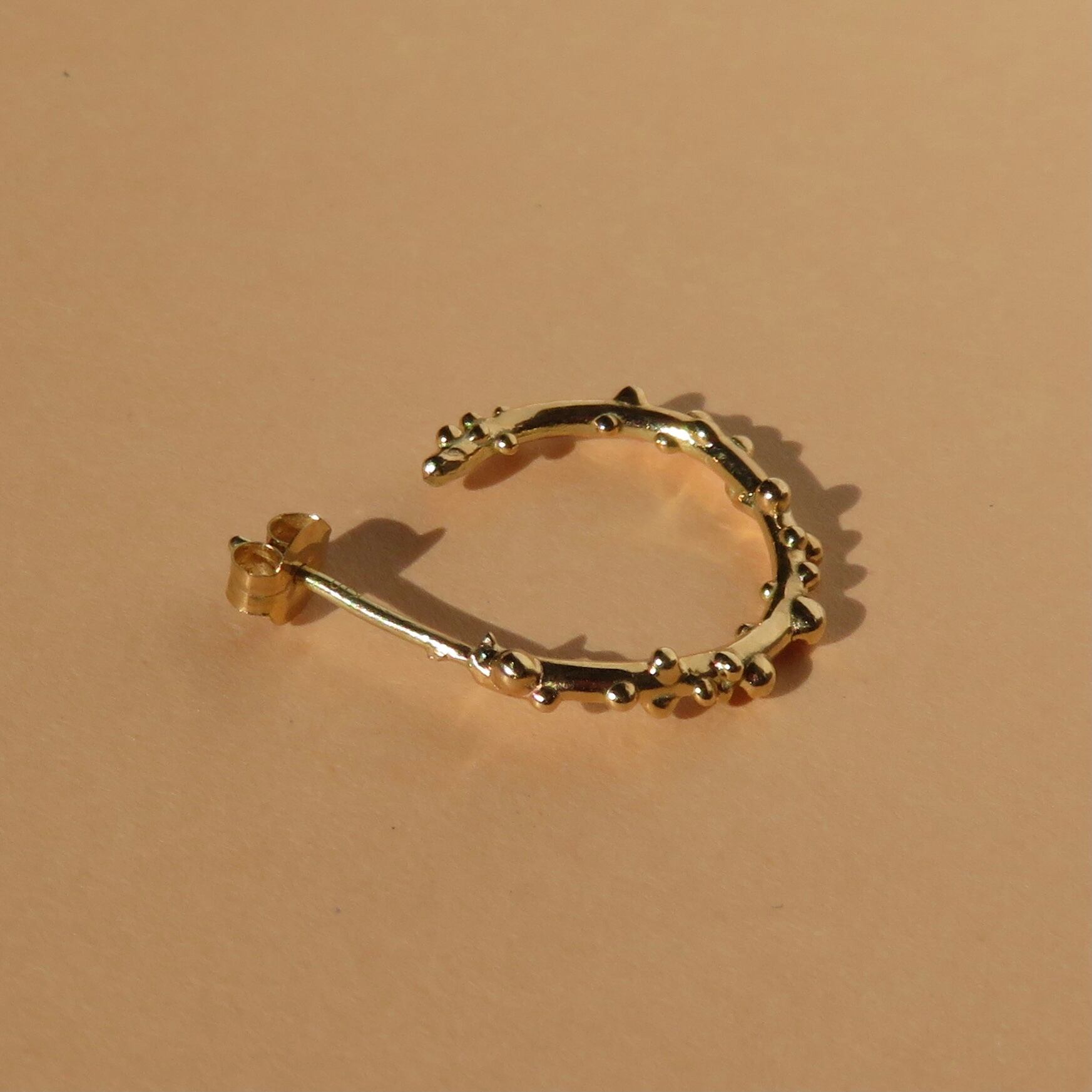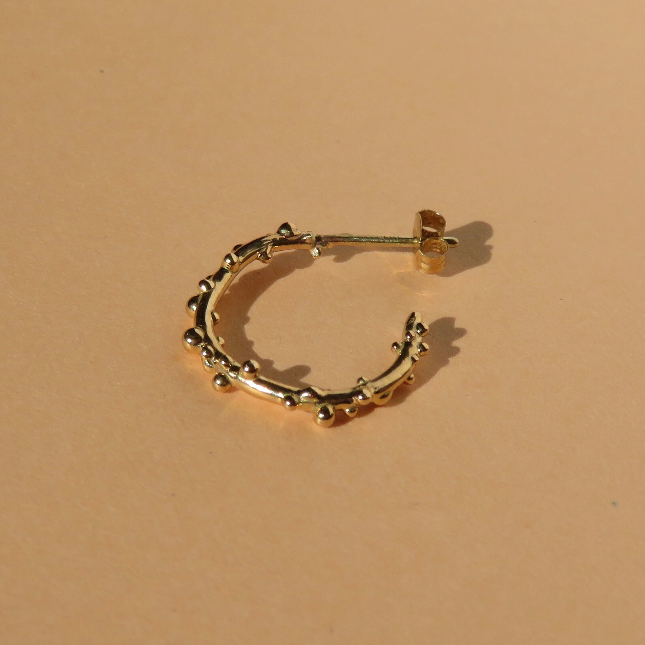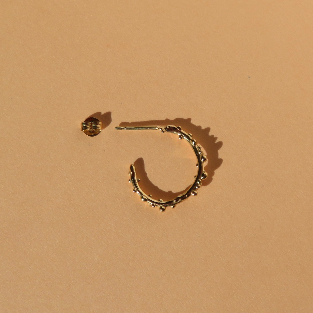 K10イエローゴールドでお作りした泡のようなつぶつぶが散りばめられたピアスです。メッキではない10金の本来の美しい輝きを楽しんでいただける作品です。