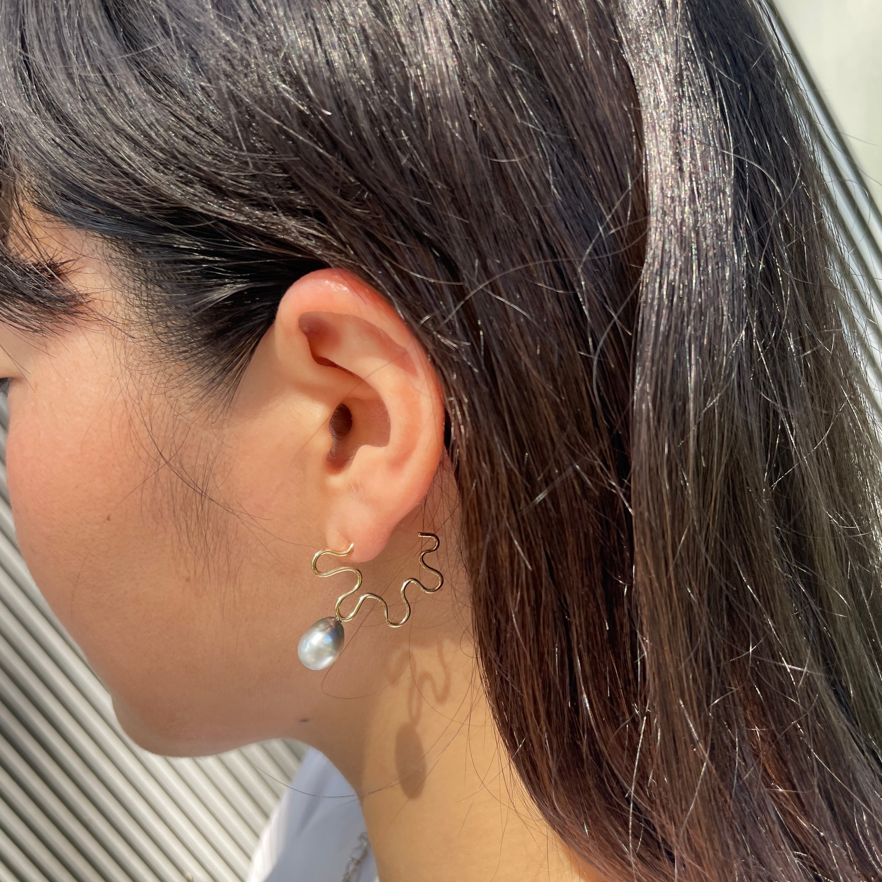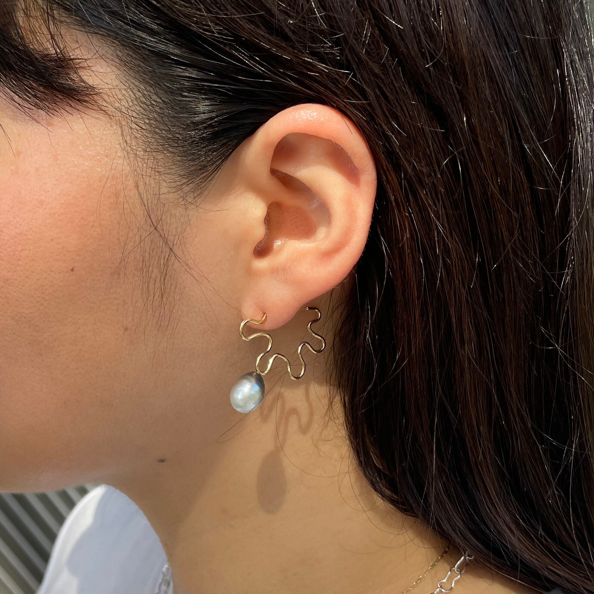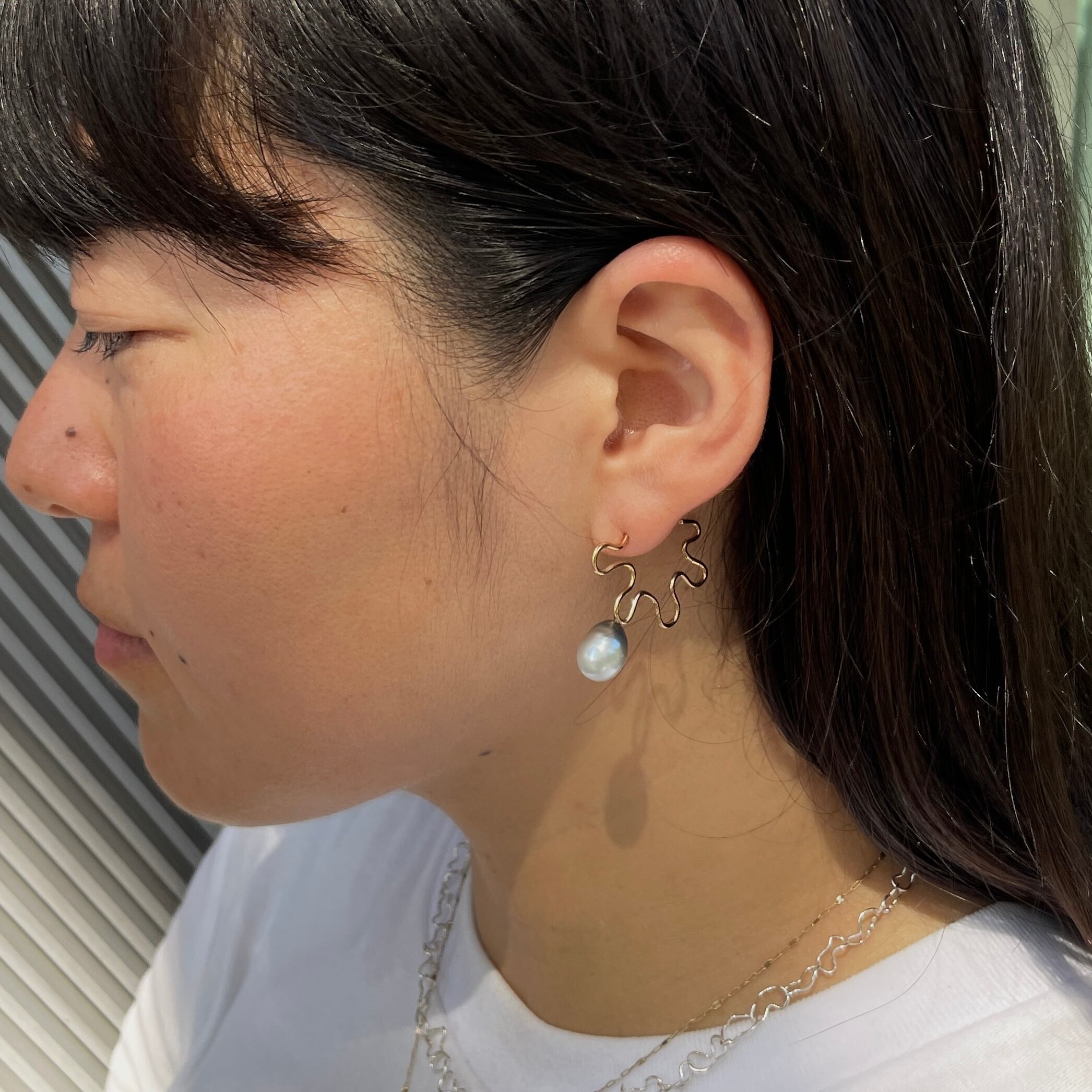 パール部分:アコヤパール あえての真円では無い自然な形をした真珠を使用しています。一つ一つ形が違うこと、色も白であったりややグレーがかっていたりします。その違いも楽しんでいただけると嬉しいです。