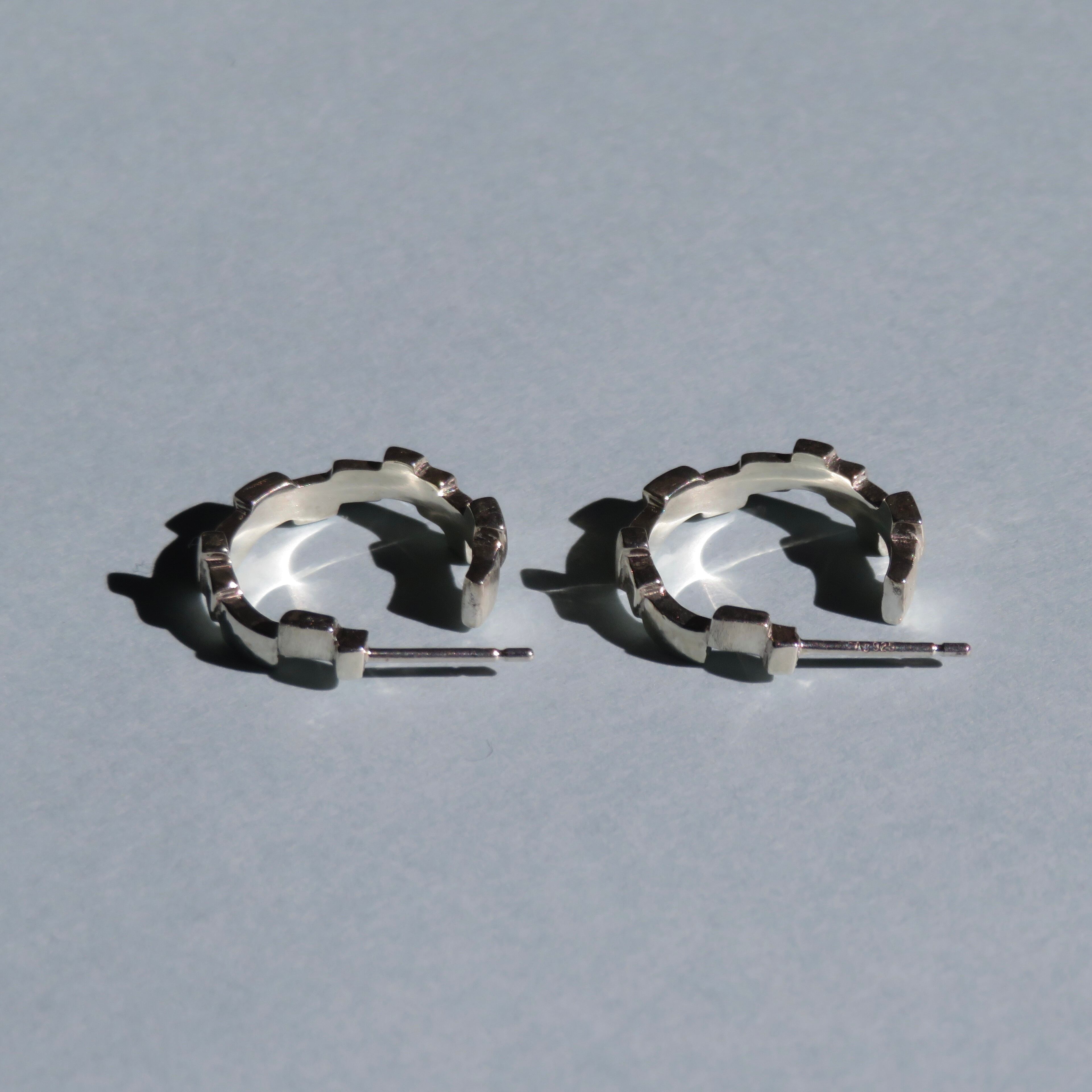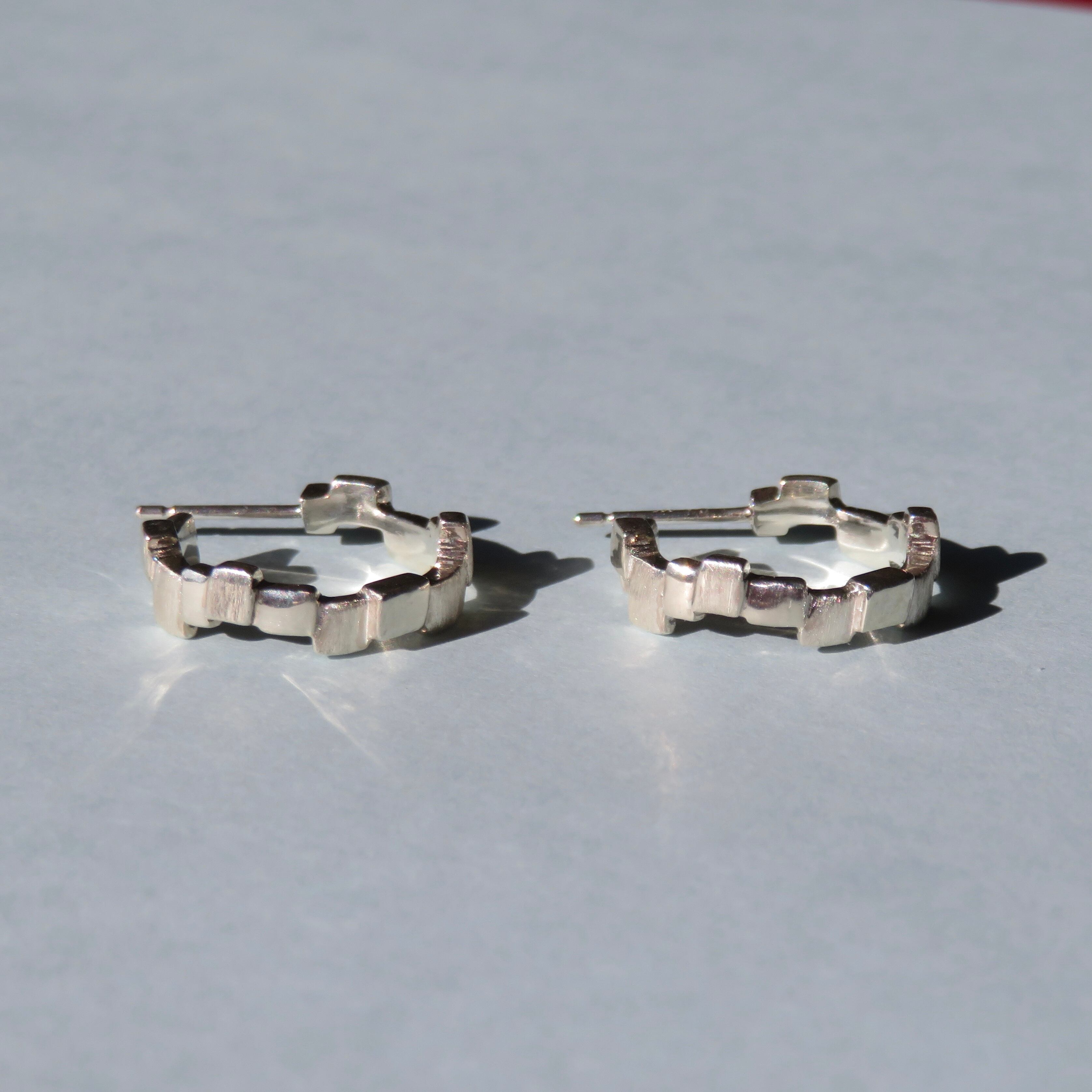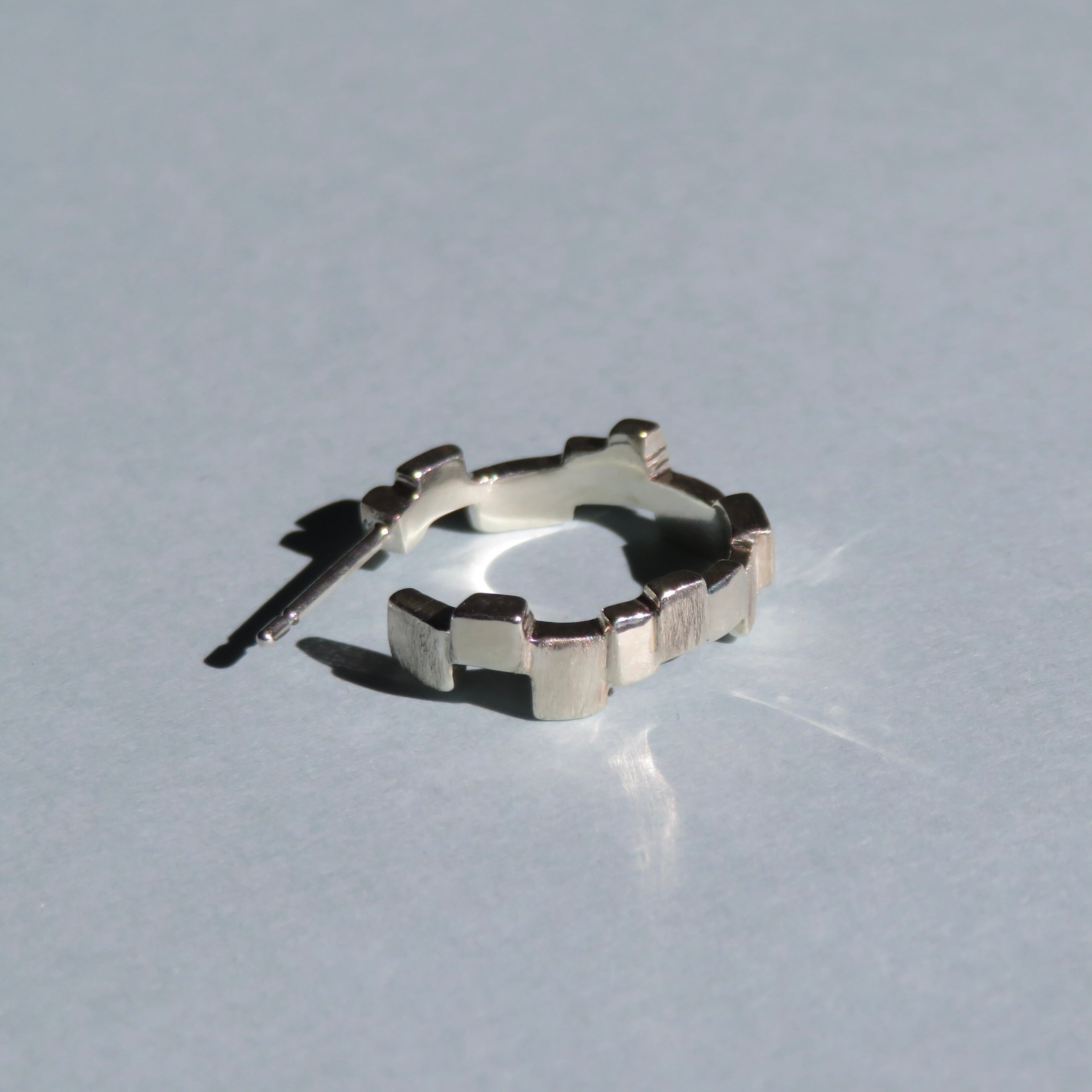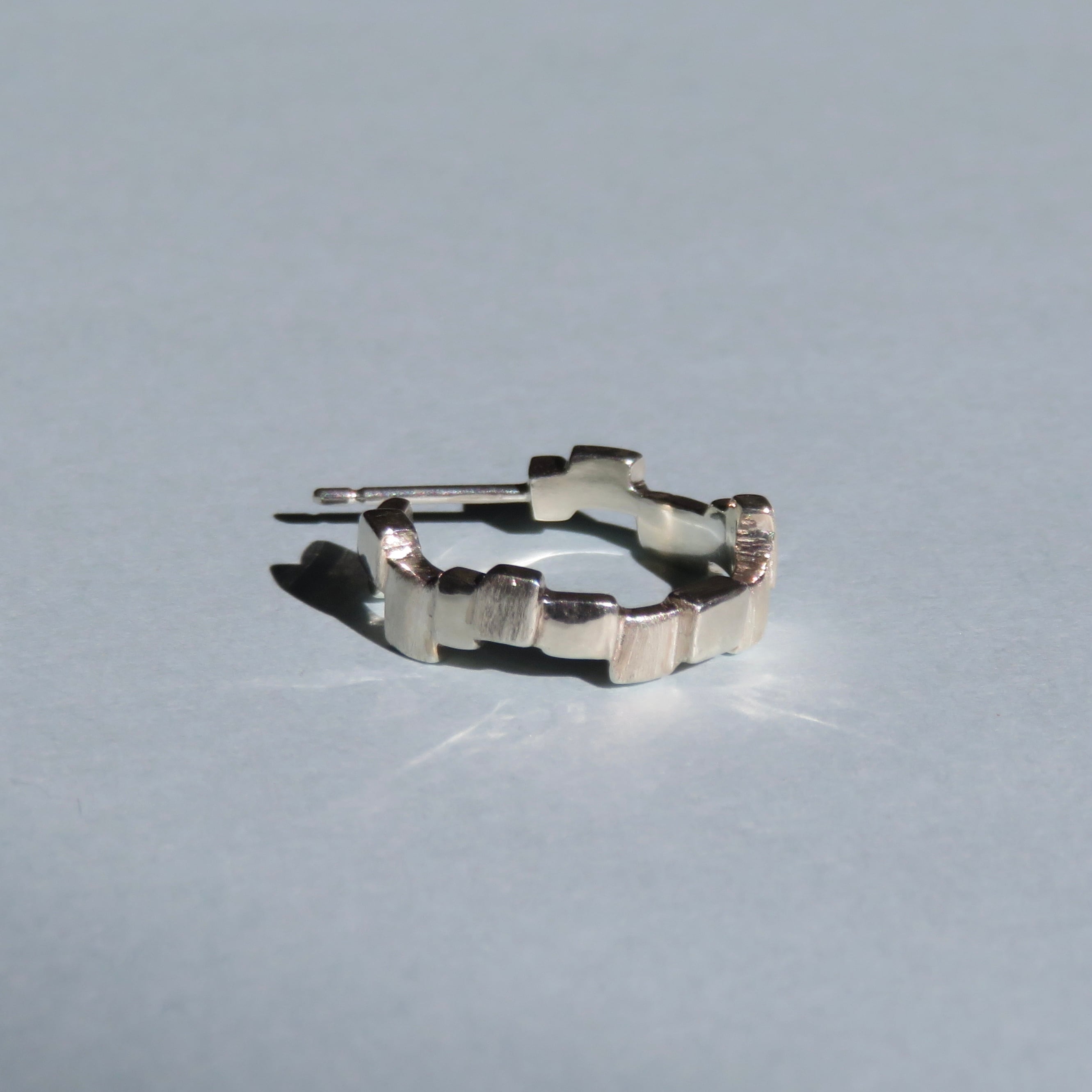 ピカピカに磨いた鏡面とザラザラに仕上げた面のシルバー925のピアスです。