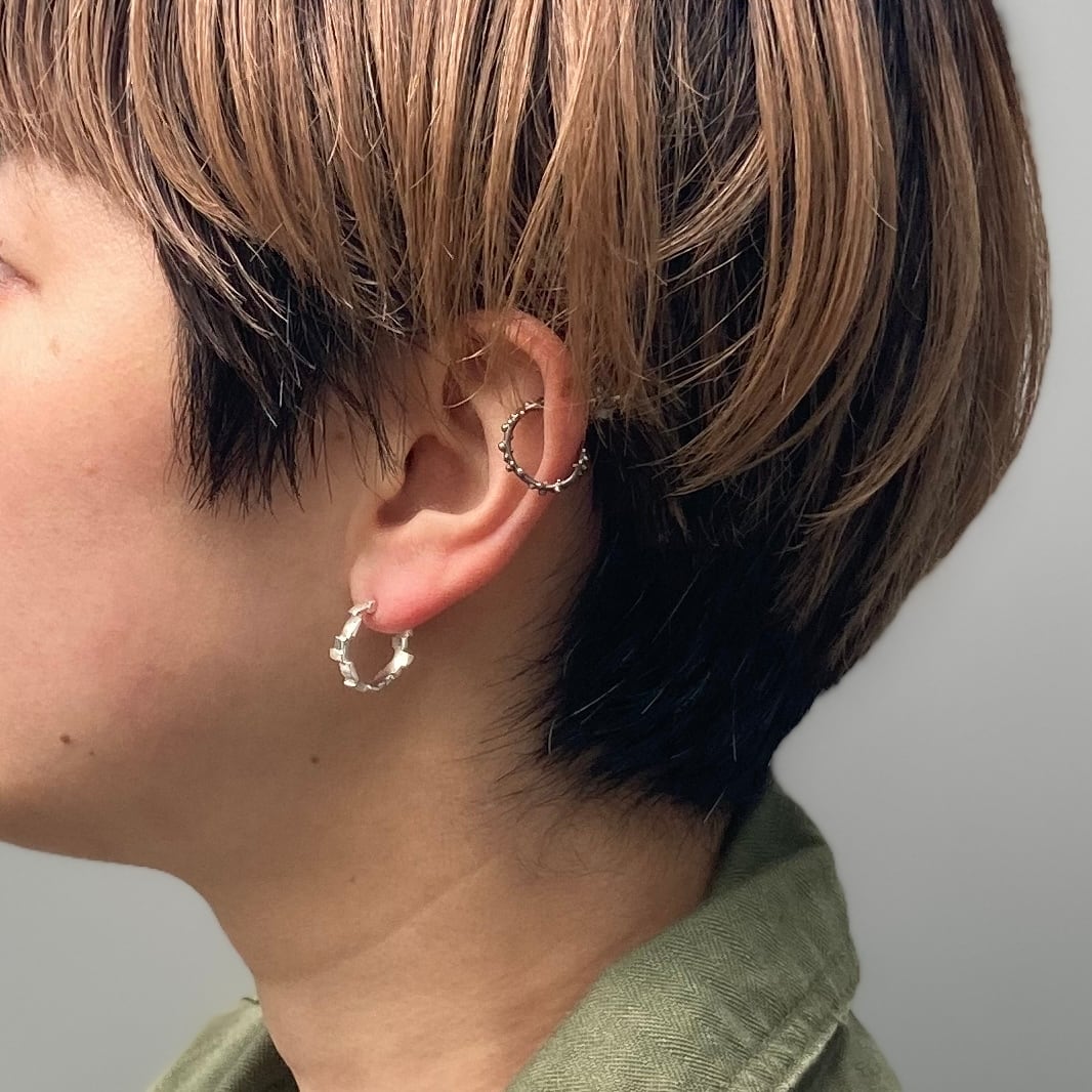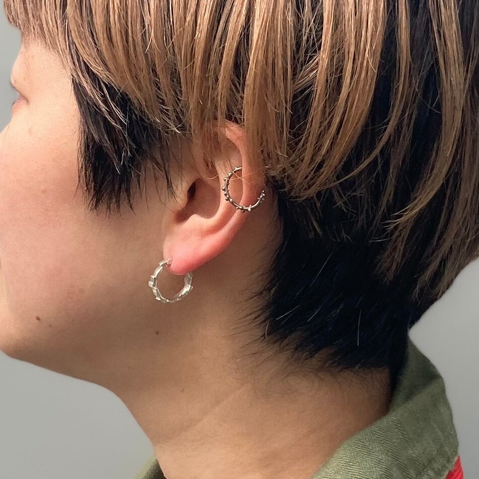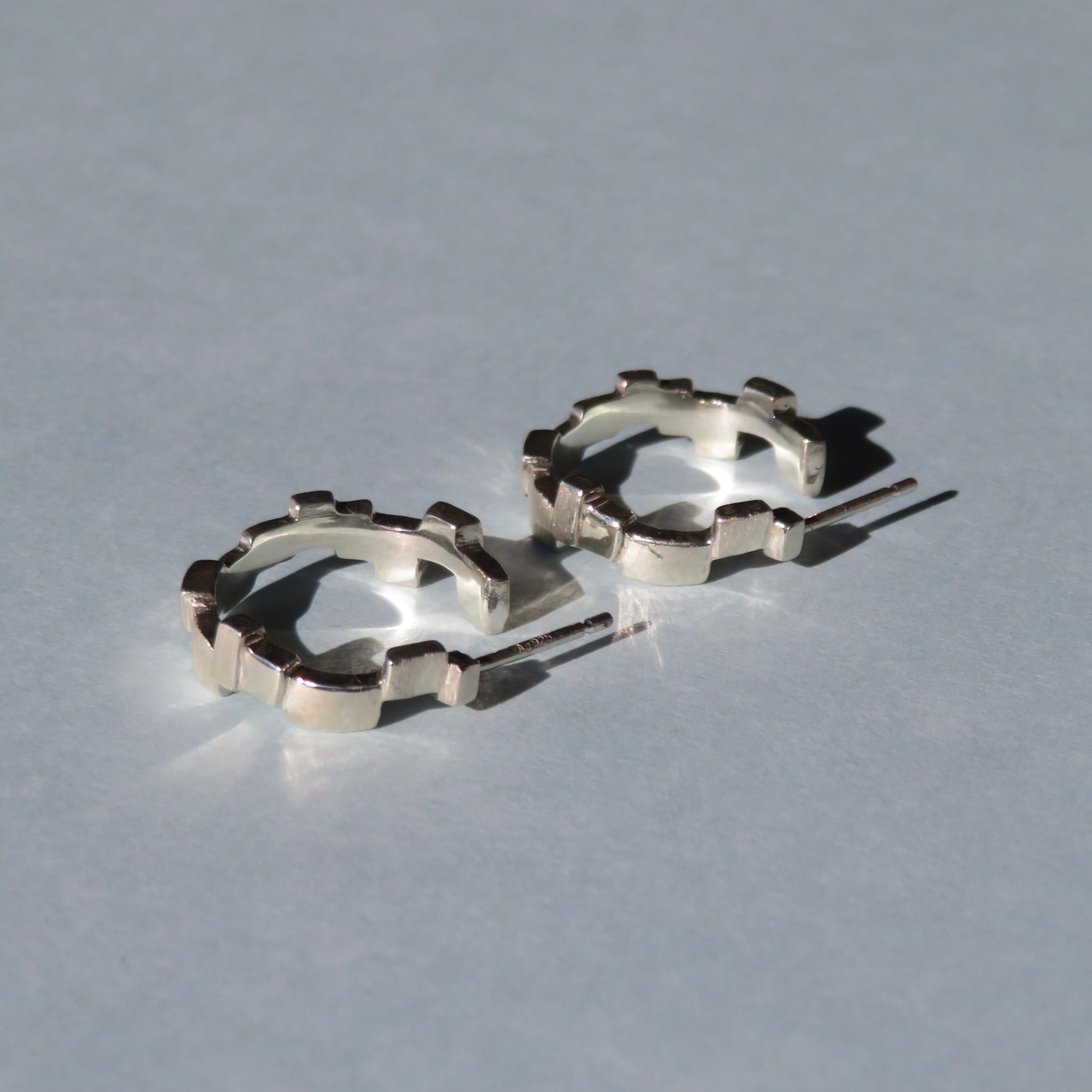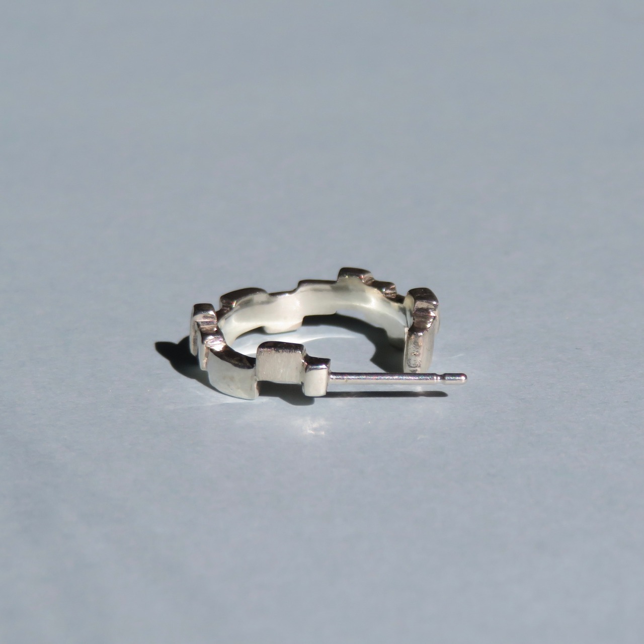 ピカピカに磨いた鏡面とザラザラに仕上げた面のシルバー925のピアスです。
